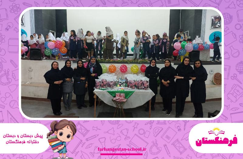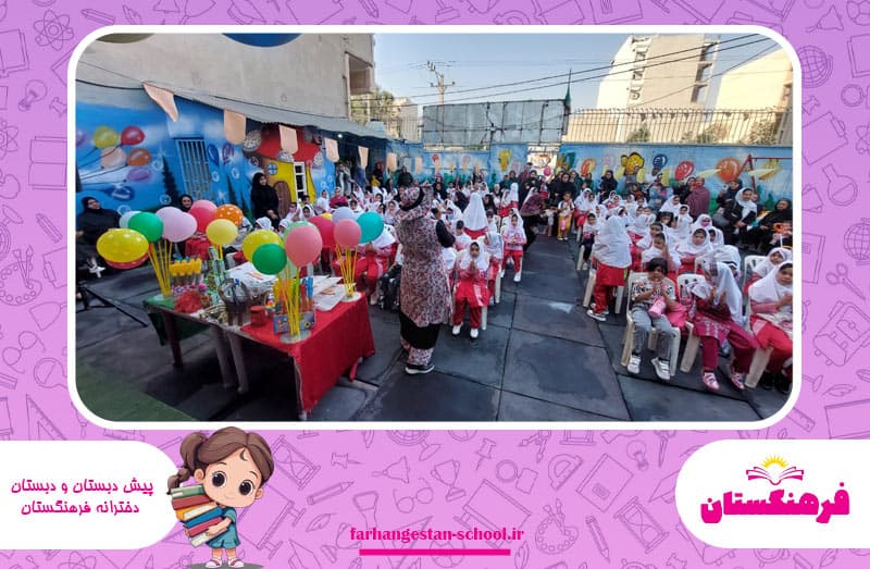 سالن آمفی‌تئاتر مدرسه با امکانات صوتی و تصویری پیشرفته، مناسب برگزاری مراسم، جشن‌ها و برنامه‌های فرهنگی است.